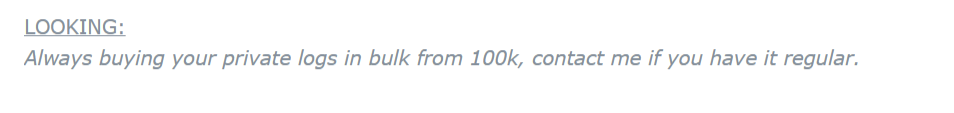 An IAB on XSS Advertises they are seeking to purchase stealer logs in bulk