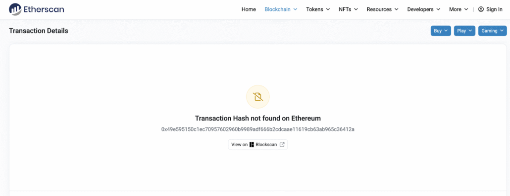 However, the Ethereum transaction hash they provide does not exist on the blockchain:
