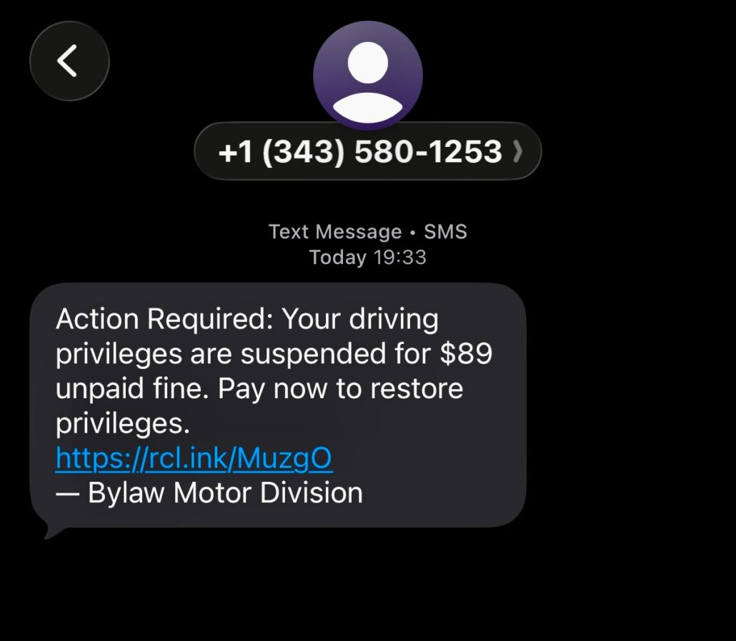 Although the link in the message was no longer active, our research was able to recover the destination URL and identify it as a fraudulent webpage impersonating the Government of British Columbia, specifically the non-existent Court of Justice.