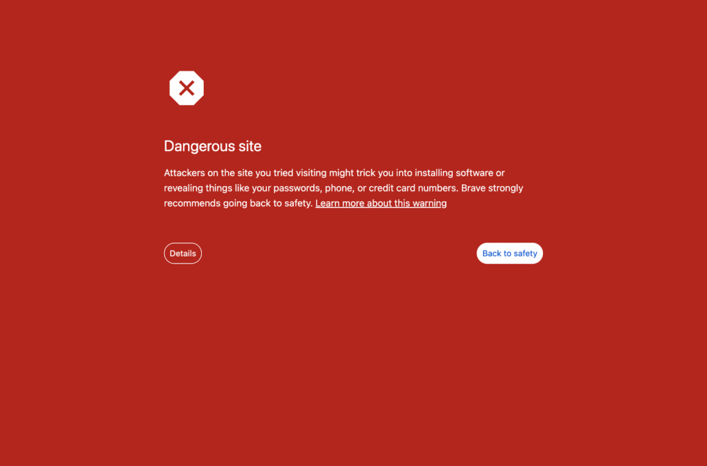 The browser’s phishing warning when attempting to visit the now-flagged domain.