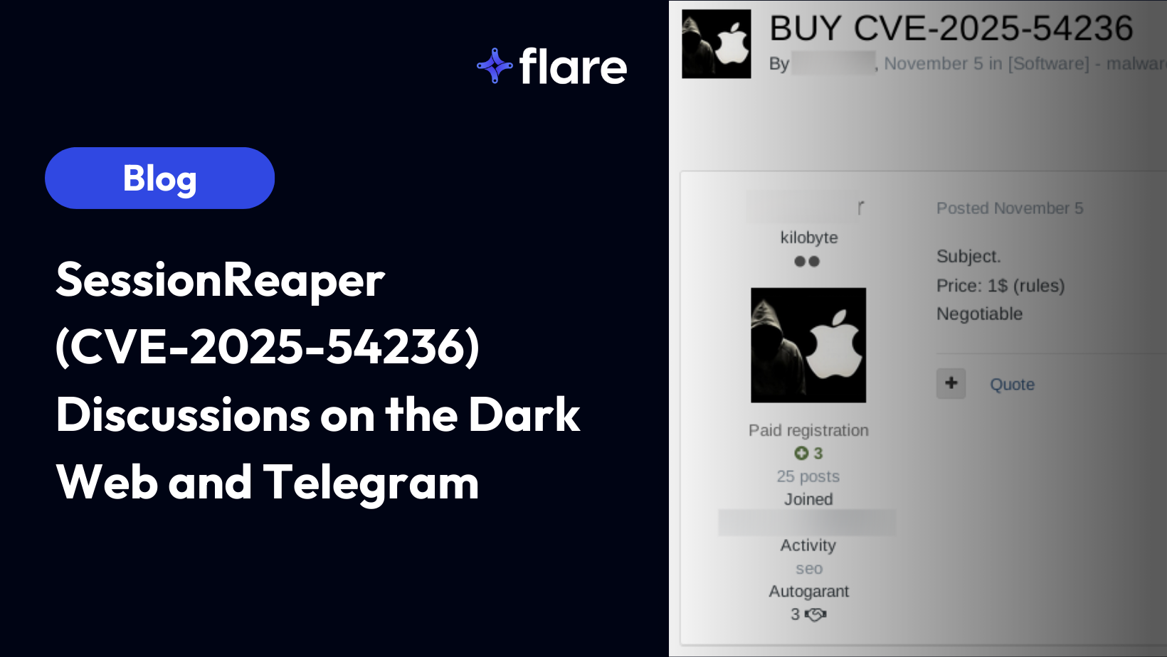 Threat actors discuss CVE-2025-54236 in Carder Market (Source: Flare)