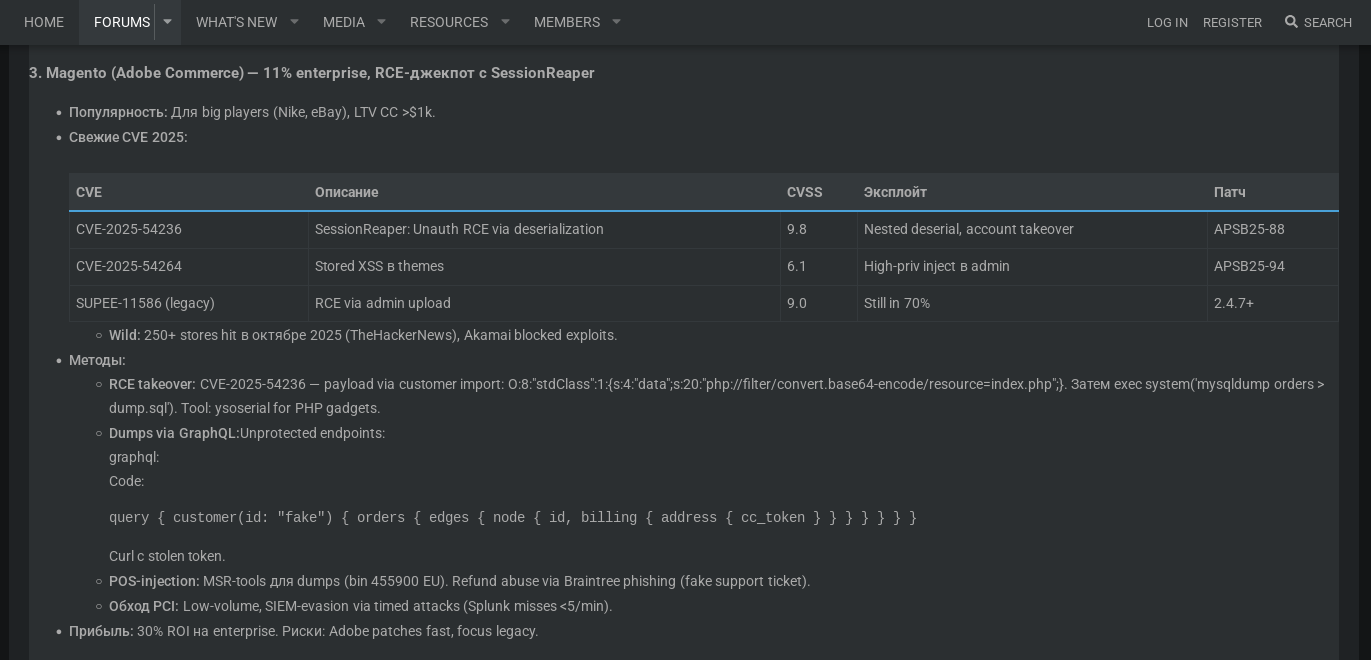 By November 3rd, discussions on carder.market revealed how cybercriminals are actively commodifying this CVE across Magento, WooCommerce, and Shopify to escalate from credential theft to full RCE-enabled financial extraction campaigns via backend compromise, payment token exfiltration, and residential proxy identity spoofing.