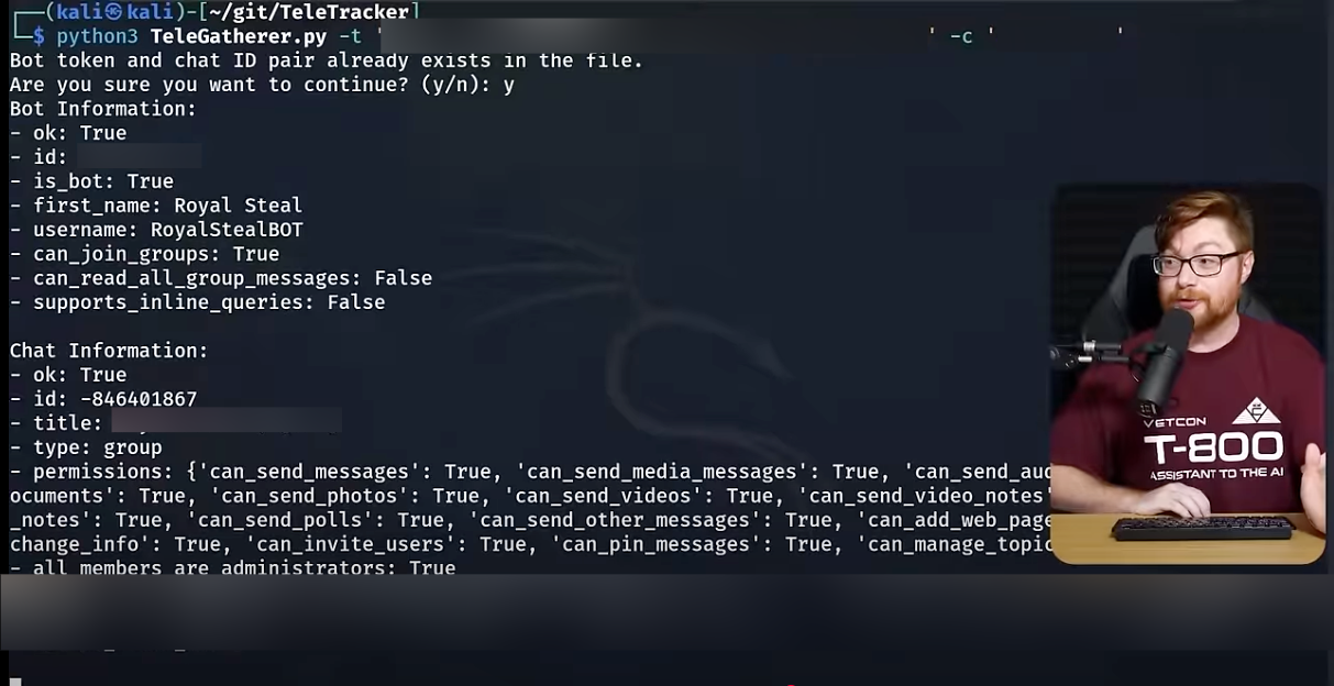 John pulls up the name of the chatbot, the title of the chat it shares leaked credentials to, and other data