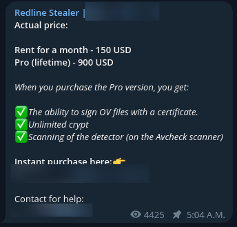 Not every cybercriminal has the coding expertise to build their own malware, and for some, it’s more cost-effective to simply buy it. Some Telegram groups and channels act as a marketplace for malware code. Many channels specialize in selling specific variants of malware, such as infostealers and ransomware. Threat actors develop the code, sell it to other criminals, and it is then used in an attack against individuals or organizations.