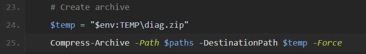 | Collection | T1560.001 | Archive Collected Data: Archive via Utility | Compress-Archive cmdlet creates TEMP\diag.zip from discovered tdata paths before exfiltration. |