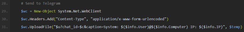 - Invoke-RestMethod / WebClient call to api.telegram.org/bot*/sendDocument.
