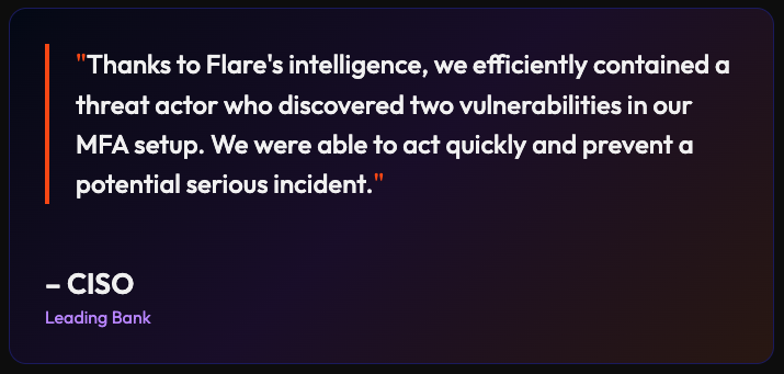 Through actionable intelligence with Flare, security teams stay ahead of threats, react quickly, and protect their assets better.