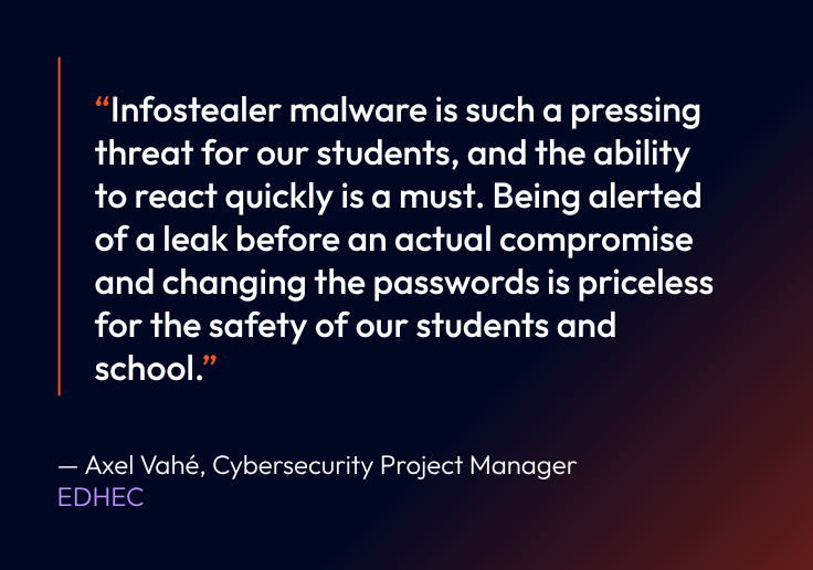 When 10,000 students use personal computers with varying levels of digital hygiene to access academic systems, compromised credentials become inevitable. For EDHEC Business School, the question wasn’t if student accounts would be targeted by infostealer malware—but how quickly the Information Systems department could detect and respond to leaks before attackers could exploit them.