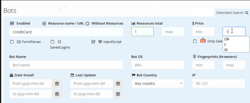 Genesis Market visitors can search for bots with certain features