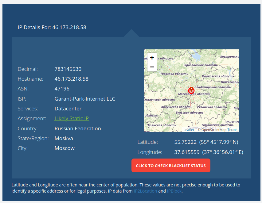 The IP details for Genesis Market show and address in Russia